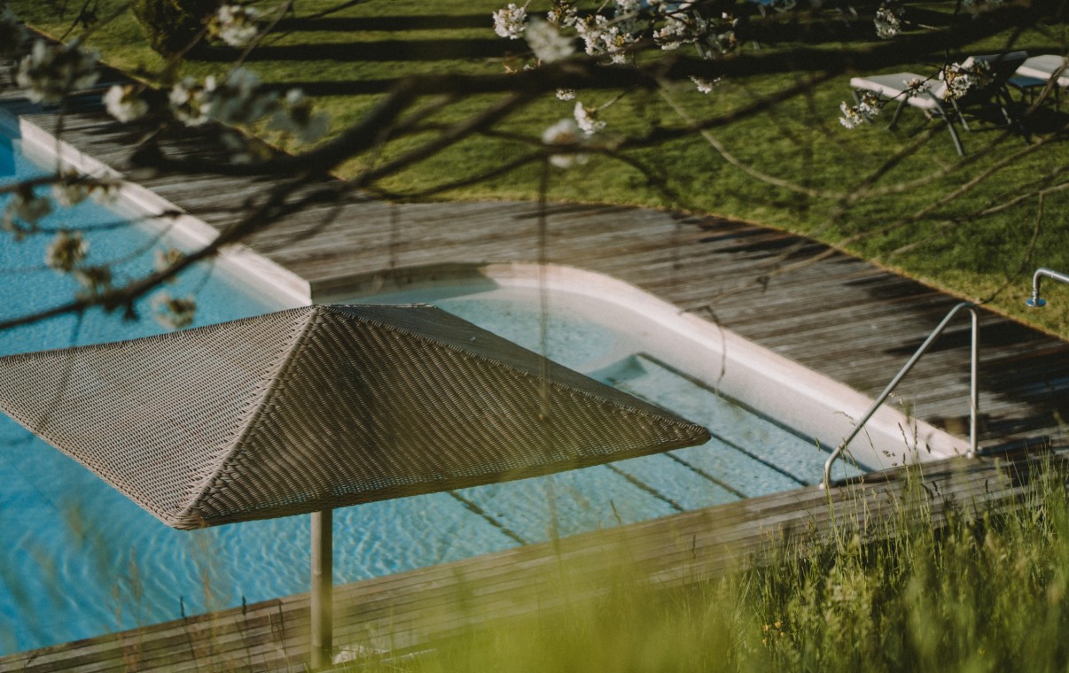 Auf der 3.5 ha großen Liegewiese steht unser beheizter Pool; mit Blick auf Meran und die umliegende Bergwelt. Im Erdgeschoss befindet sich die Küglerhof SPA. Unser Ort des Wohlbefindens. Mit Sauna, Whirlpool, Dampfbad und Massage-Räume. Hier bieten wir wohltuende Treatments an.