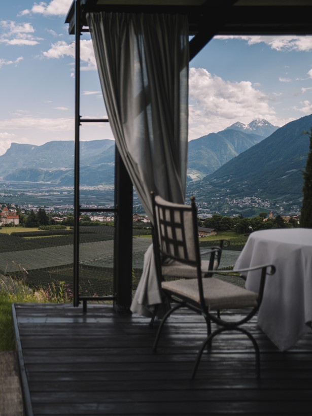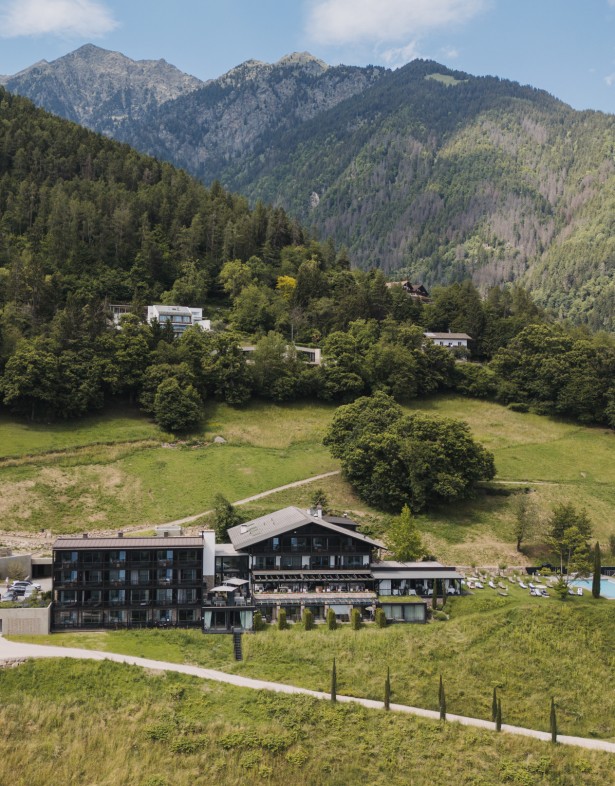From your room, the pool, the garden and the terrace you have unobstructed views of the forest, mountains and the unique spa town of Merano.